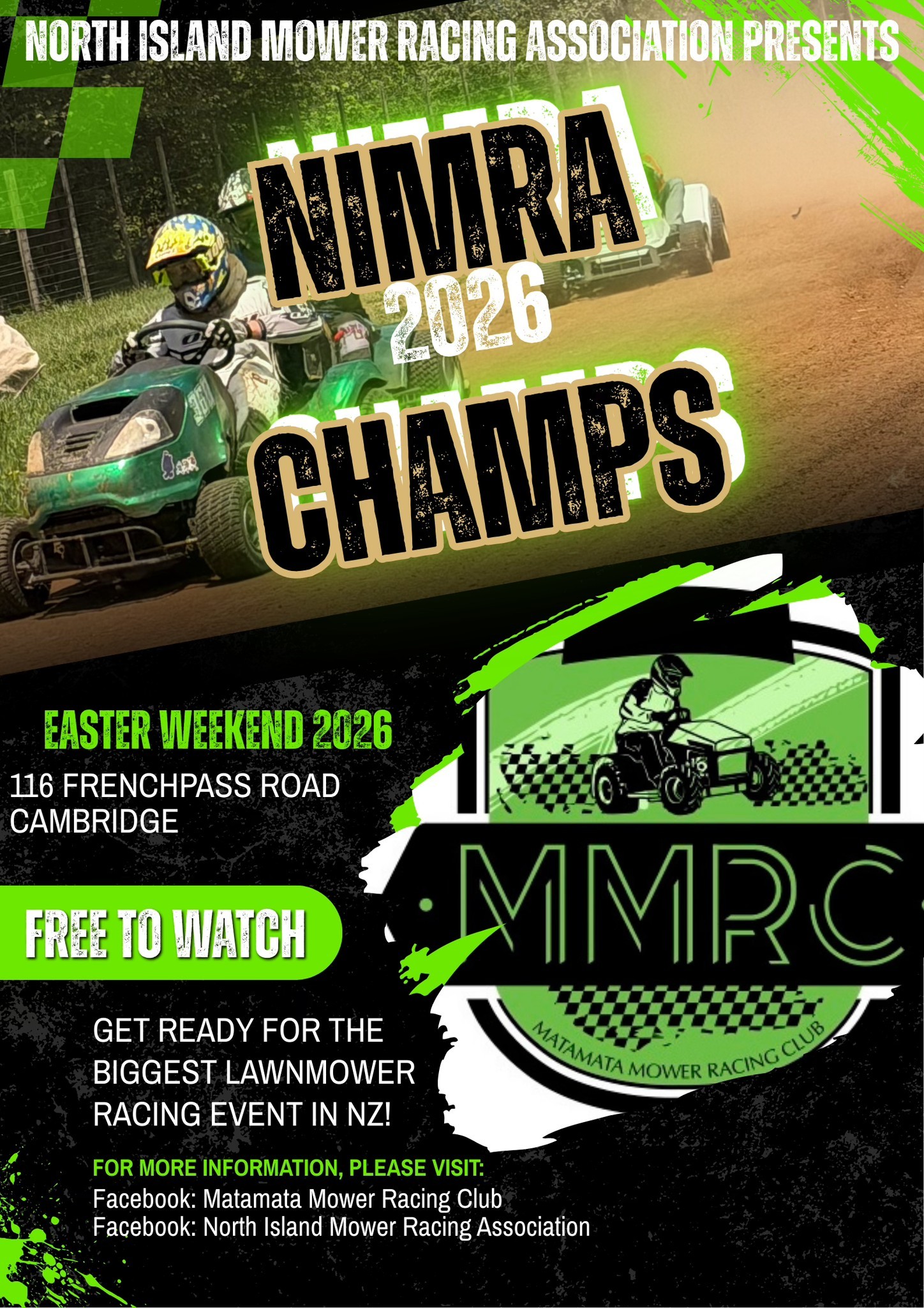 Stay up to date with upcoming Lawnmower Racing New Zealand events hosted by our Lawnmower Racing Association and affiliated clubs. Our race meetings showcase the excitement of grassroots lawnmower racing, bringing competitors and spectators together for action-packed days of racing across the region. From local club rounds to major championship events, North Island lawnmower racing continues to grow as more people discover one of the cheapest forms of motorsport in New Zealand. Check the calendar below for upcoming race dates, locations, and event details, and come along to experience the fun of lawnmower racing events in NZ.