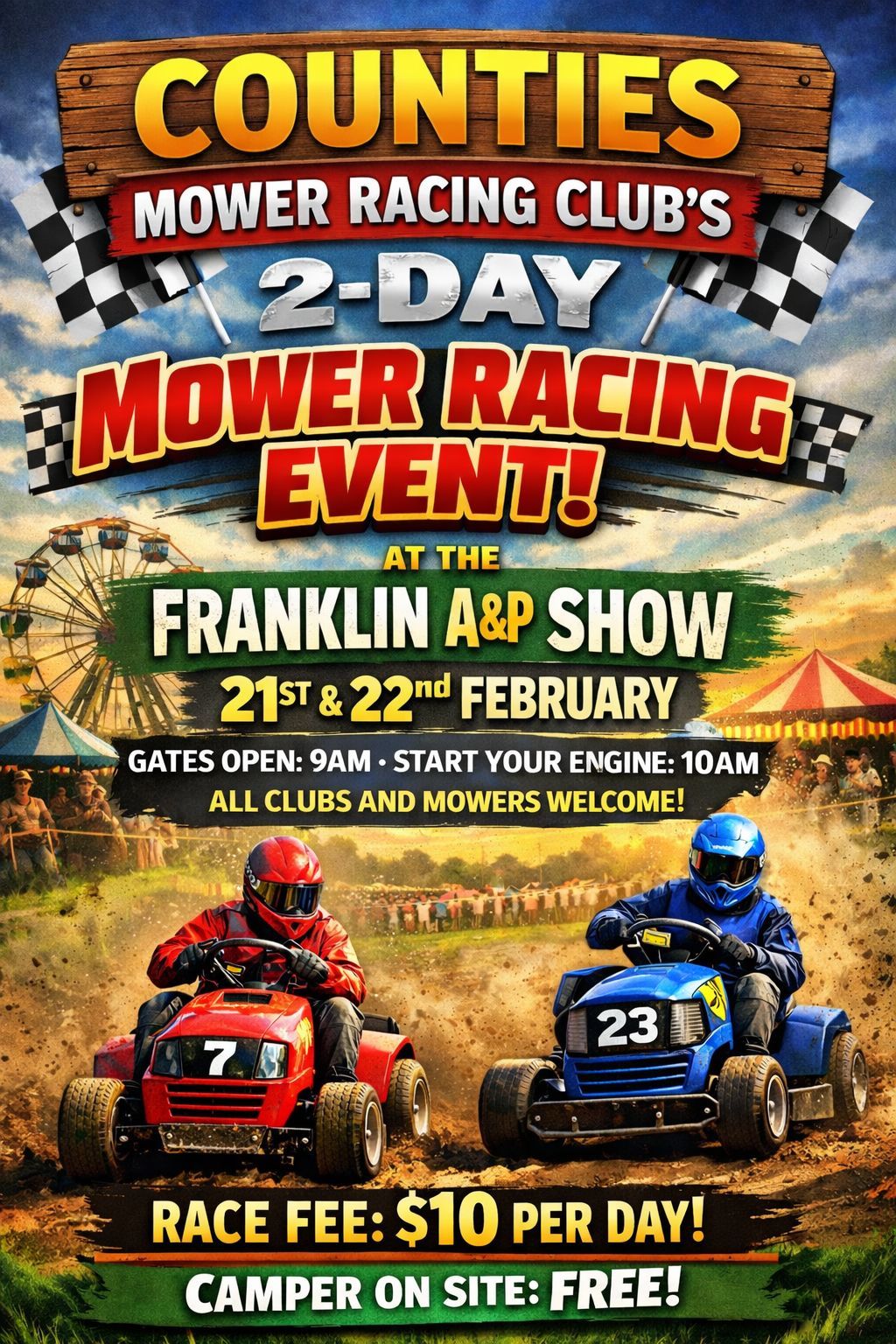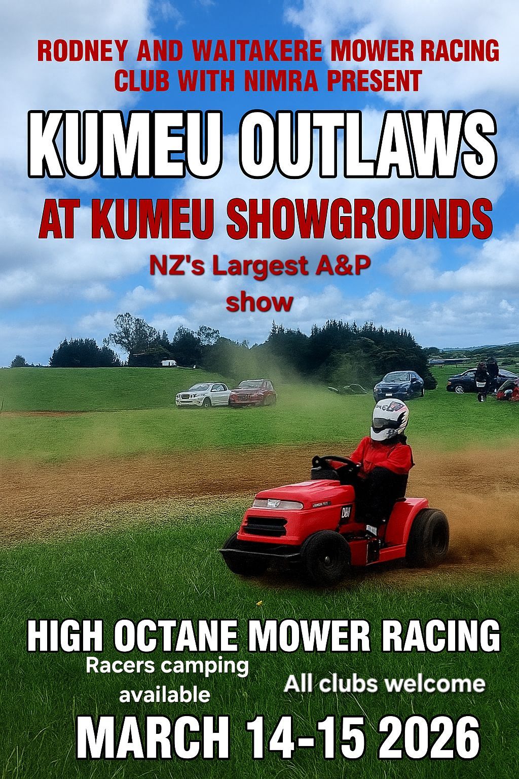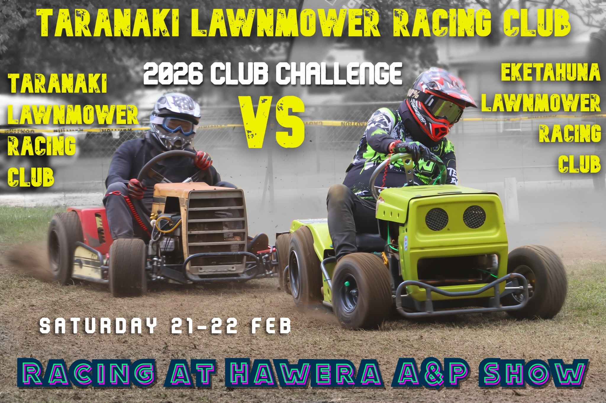 Stay up to date with upcoming Lawnmower Racing New Zealand events hosted by our Lawnmower Racing Association and affiliated clubs. Our race meetings showcase the excitement of grassroots lawnmower racing, bringing competitors and spectators together for action-packed days of racing across the region. From local club rounds to major championship events, North Island lawnmower racing continues to grow as more people discover one of the cheapest forms of motorsport in New Zealand. Check the calendar below for upcoming race dates, locations, and event details, and come along to experience the fun of lawnmower racing events in NZ.